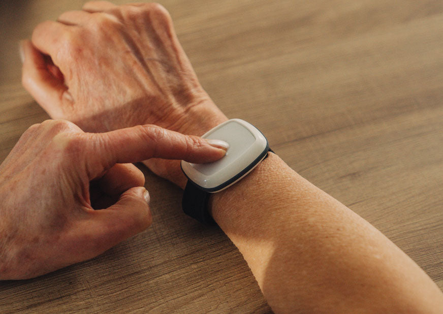 Easy-to-set-up digital alarm with fall detection. Neck or wrist option.